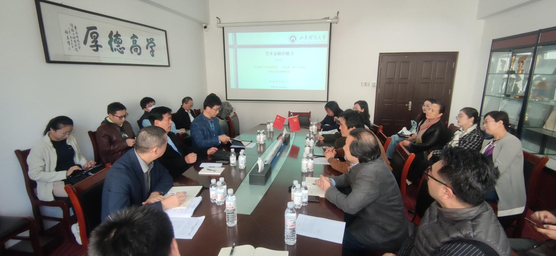 315会议室,战略研究院院长、中国艺术金融研究院院长、教育部高等学校金融类专业教学指导委员会委员张志元教授应邀就“艺术金融的魅力”做了专题讲座。讲座由传媒学院院长杨建华教授主持,人文社科处杨友才处长、做爱电影