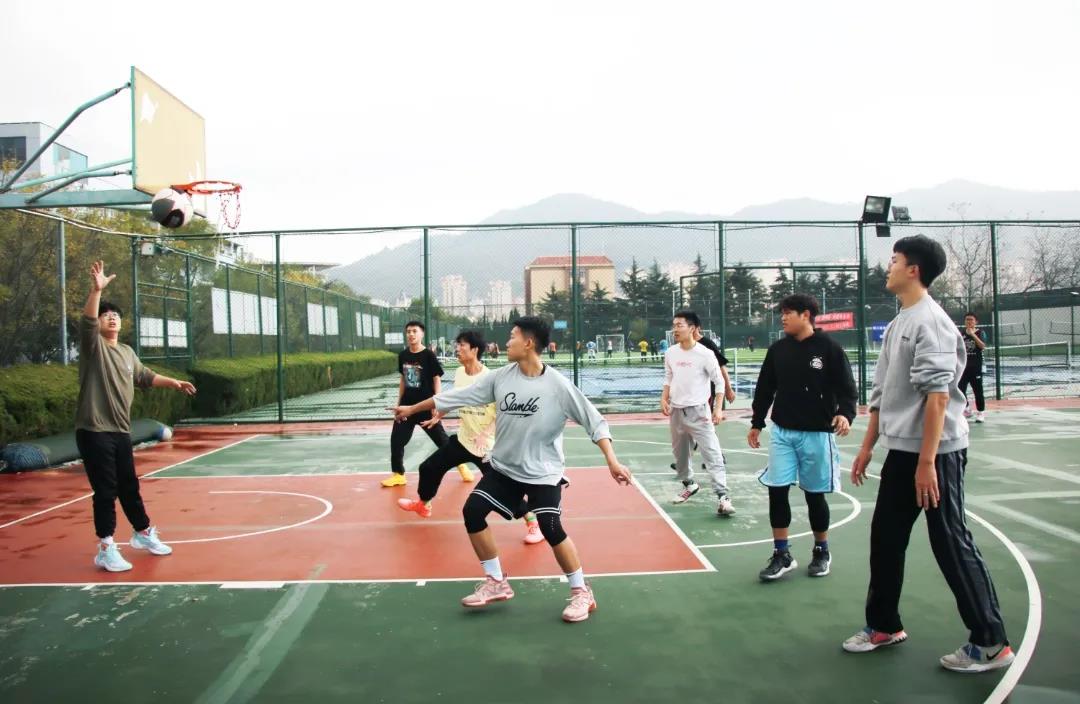 接下来,在大一球员与大三球员的对抗中,大三球员吴尚泽熟练运球,不断突进的同时注意防守。大一球员凭借着初生牛犊不怕虎的冲劲,努力拿分,最终成功赢得比赛。