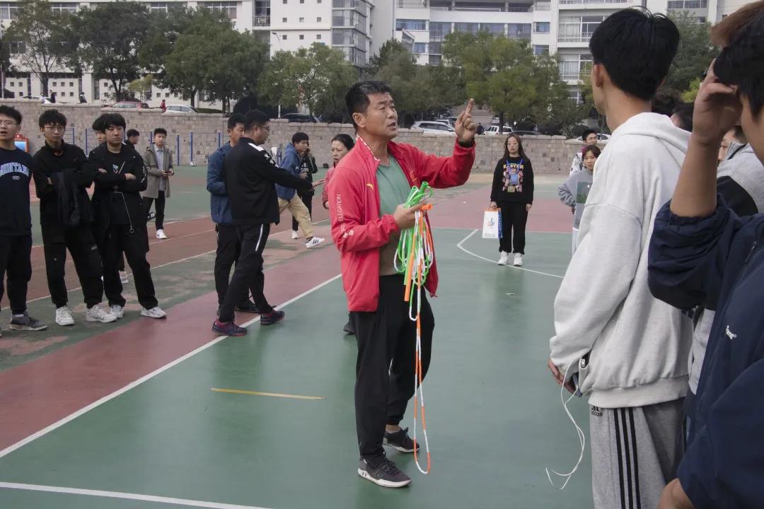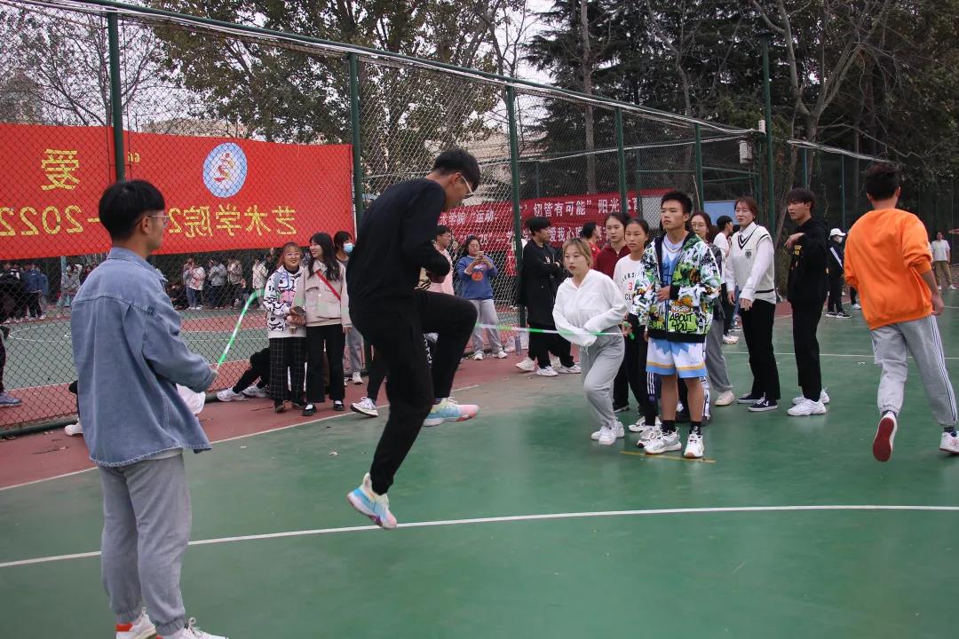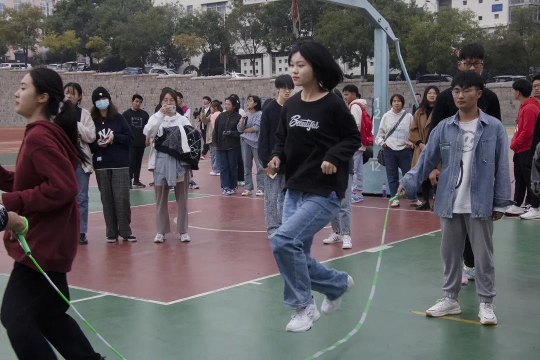 大绳队的同学们随着大绳触地的有力节奏,从翻飞的大绳下鱼贯而出,轻轻一跃,衣角飞扬。同学们配合默契,即使中途出现失误,大家依然能够沉着冷静,调整状态,以最佳的精神面貌参与比赛。