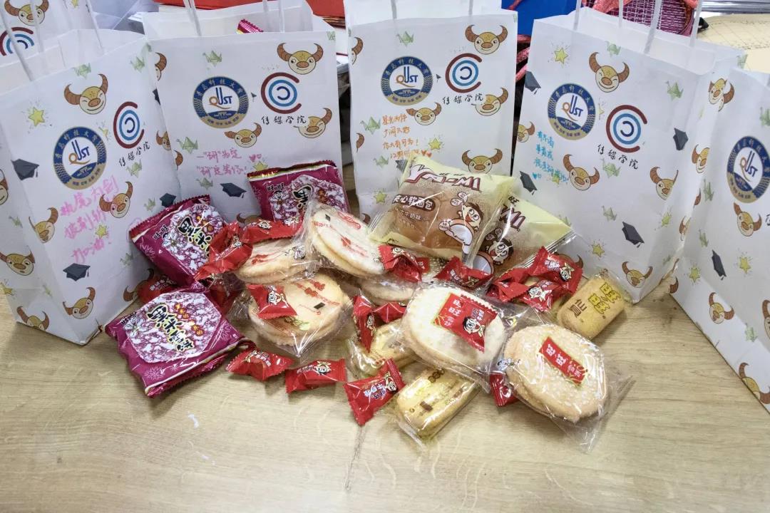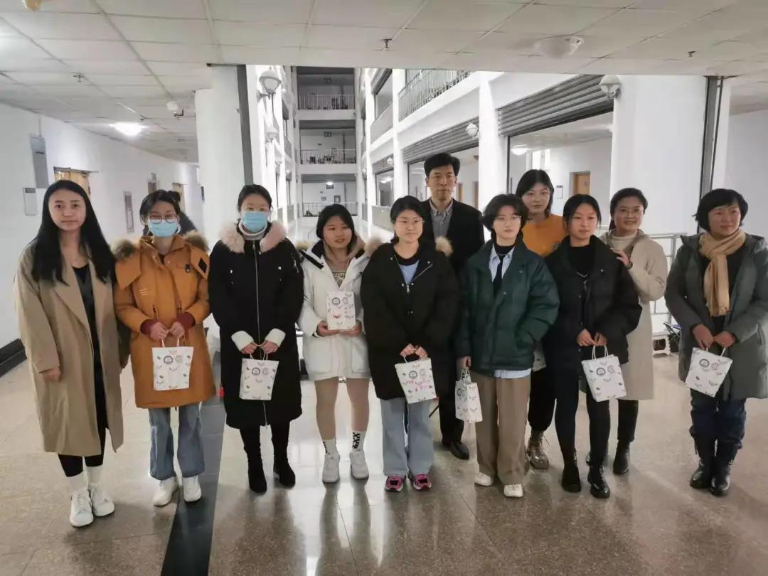 老师们携带礼物,带领全体人员来到了弘毅楼和宿舍楼,为考研同学送上考研小礼物,并详细问候同学们的学习情况和生活状况。