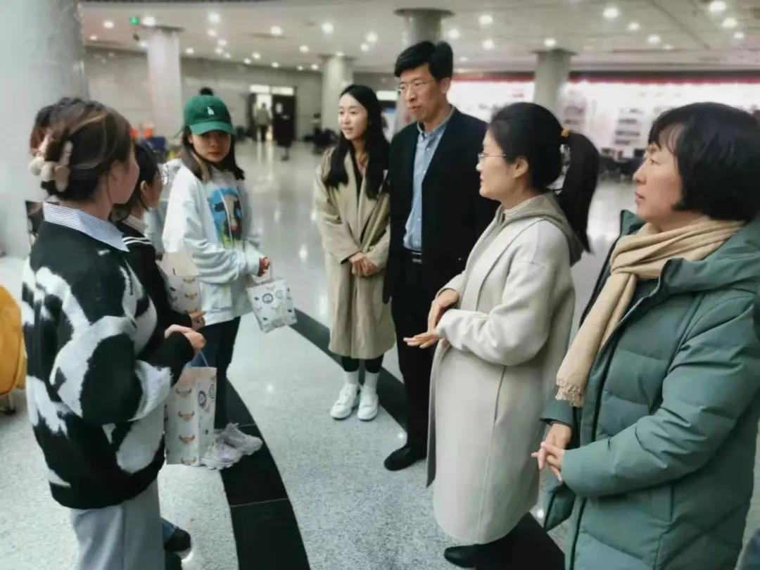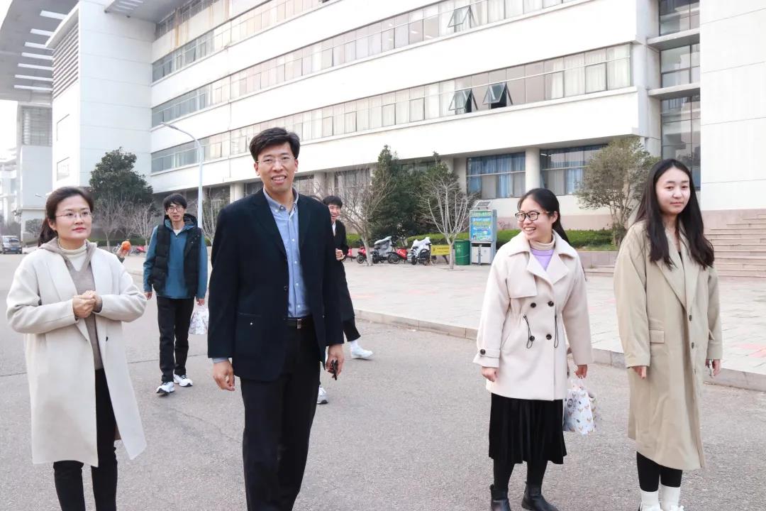 接下来,刘志国和全体老师来到图书馆和宿舍楼,为考研学子送上祝福。他们关切地询问了同学们的复习成果,并嘱咐学生天冷要加衣。谆谆话语中,展现了老师们对考研学生的关爱。