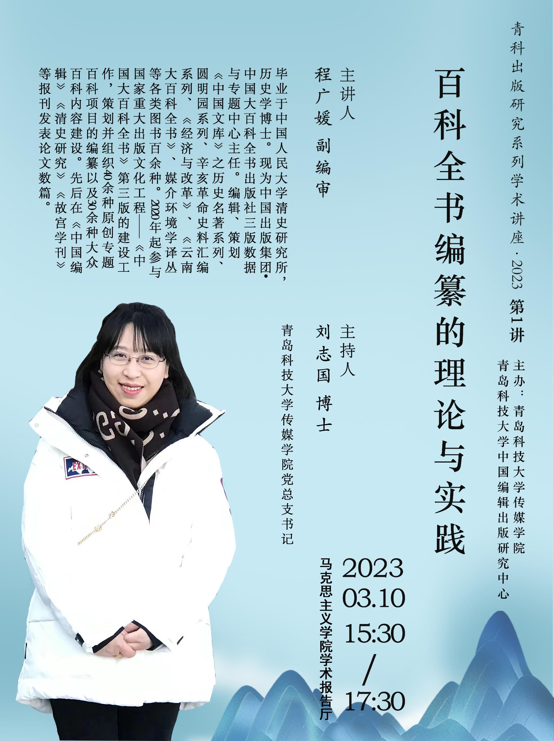 在马克思主义学院学术报告厅举办百科全书的编纂理论与实践主题讲座。此次讲座是学校出版研究系列学术讲座2023年第一讲,由中国出版集团中国大百科全书出版社三版数据与专题中心主任程广媛主讲。