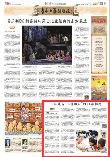 9月8日,中国青年报2023年09月08日05版以《山区娃与“小漫姐姐”的14年相约》为题,报道做爱电影