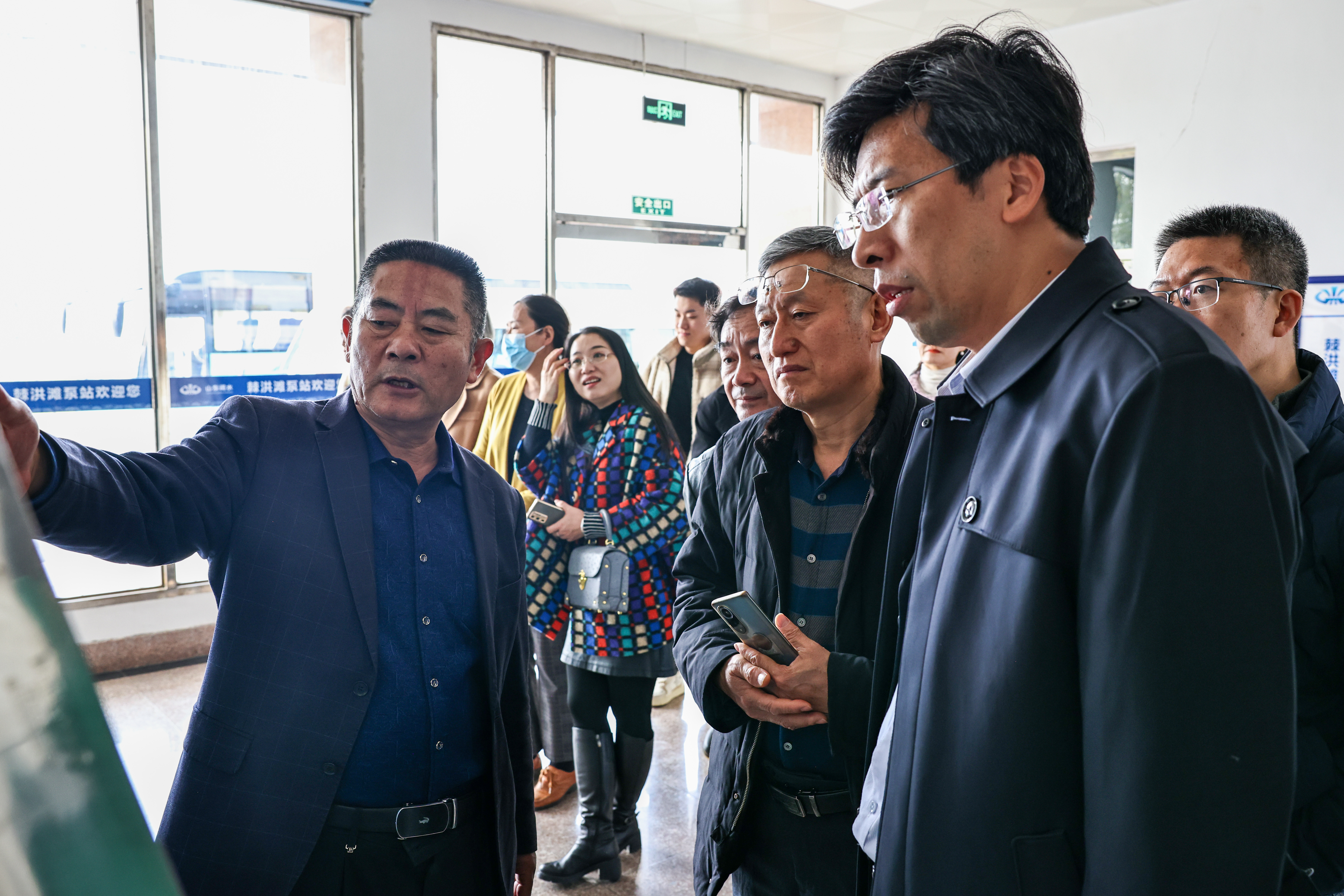 活动过程中,棘洪滩水库管理站办公室主任高月忠、机关党支部书记张燕带领师生参观考察了水库、闸口、泵房以及水文化广场、引黄济青工程图片展等文化建设项目。结合老照片、示意图、文物、史料,高月忠详细介绍了引黄济青工程的由来,发展历史,黄河水的调度,不同时期的用水量变化以及支撑青岛各区市用水情况,并以引黄济青工程参与者的身份讲述了工程建设过程中的感人事迹。