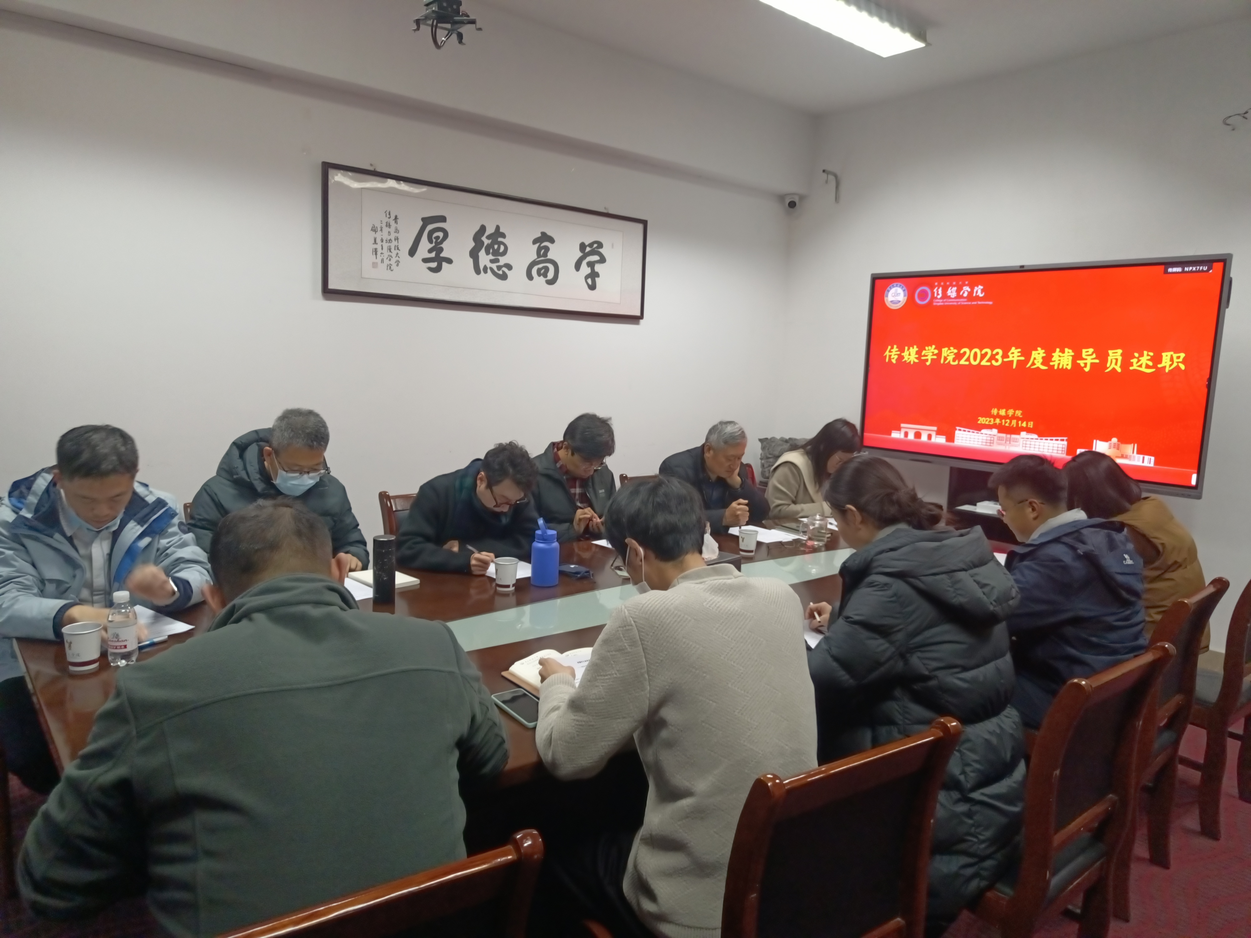 组织2023年度辅导员述职评议会。学院党总支书记刘志国、各系系主任、教师代表参与会议。