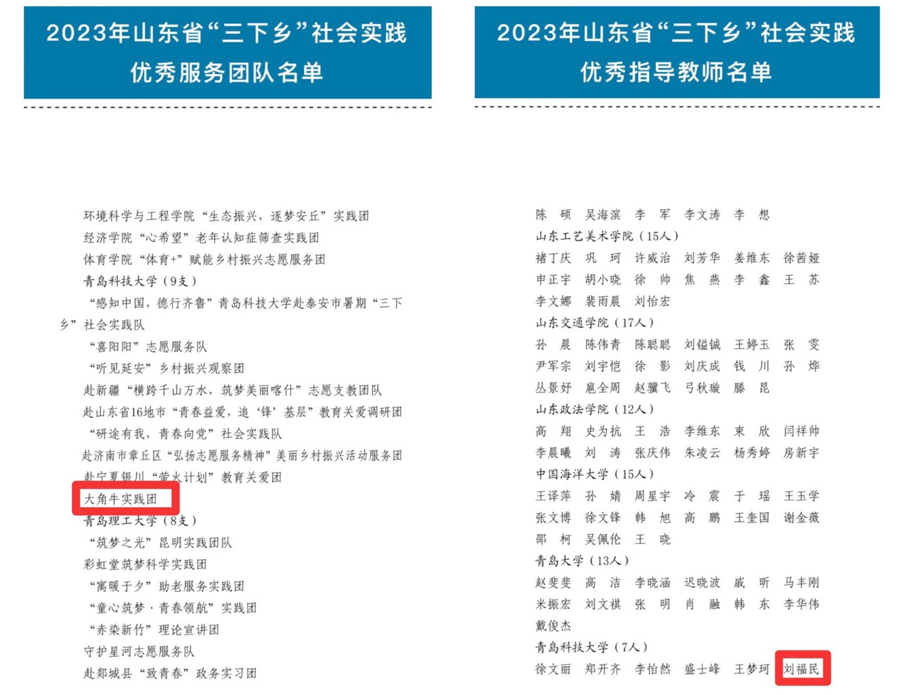 “大角牛实践团”获评省级“优秀服务团队”称号,辅导员刘福民获评省级社会实践“优秀指导教师”称号。