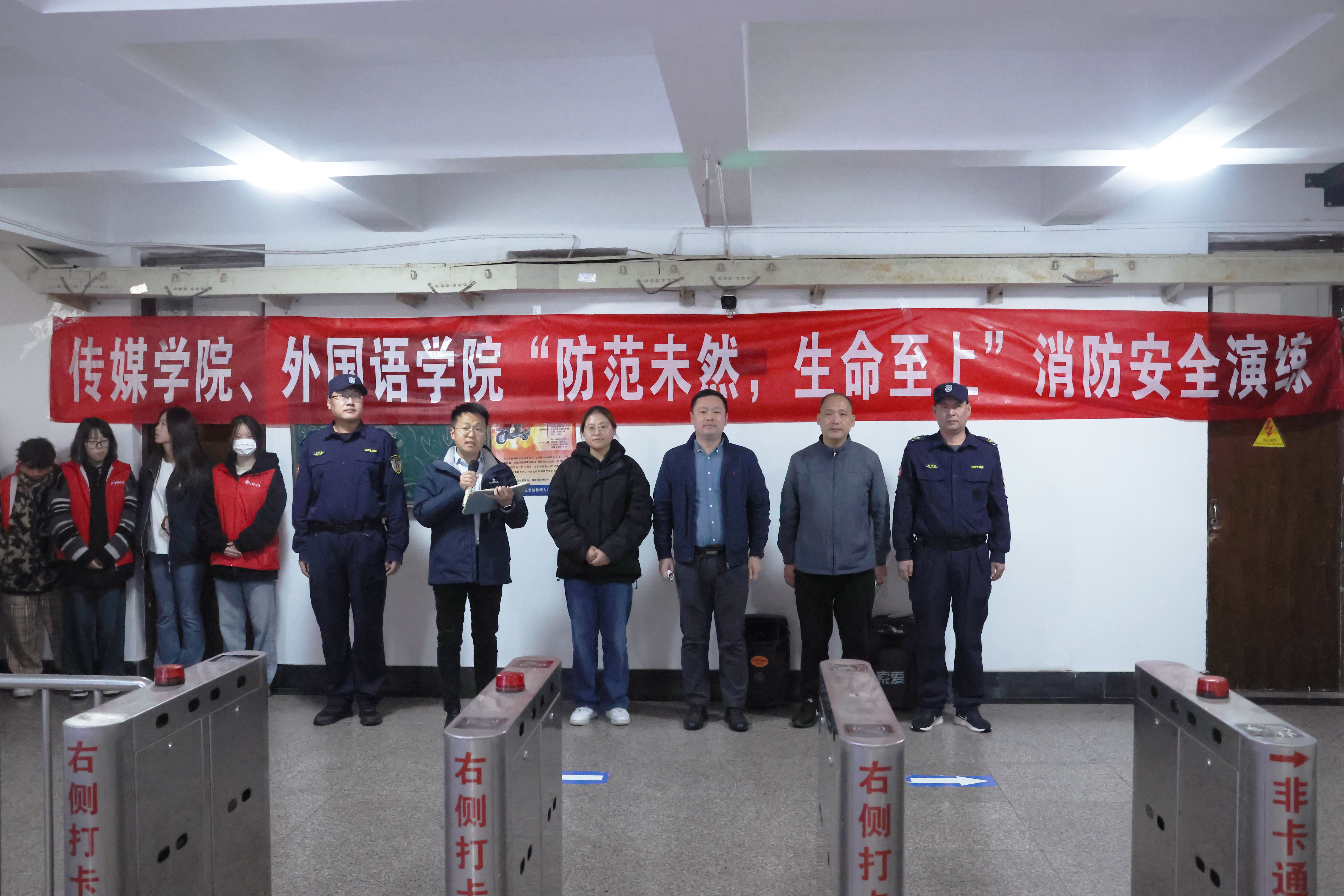 党委副书记兼副院长刘海波、辅导员刘福民,外国语学院辅导员马昆及100余名学生骨干参加演练。