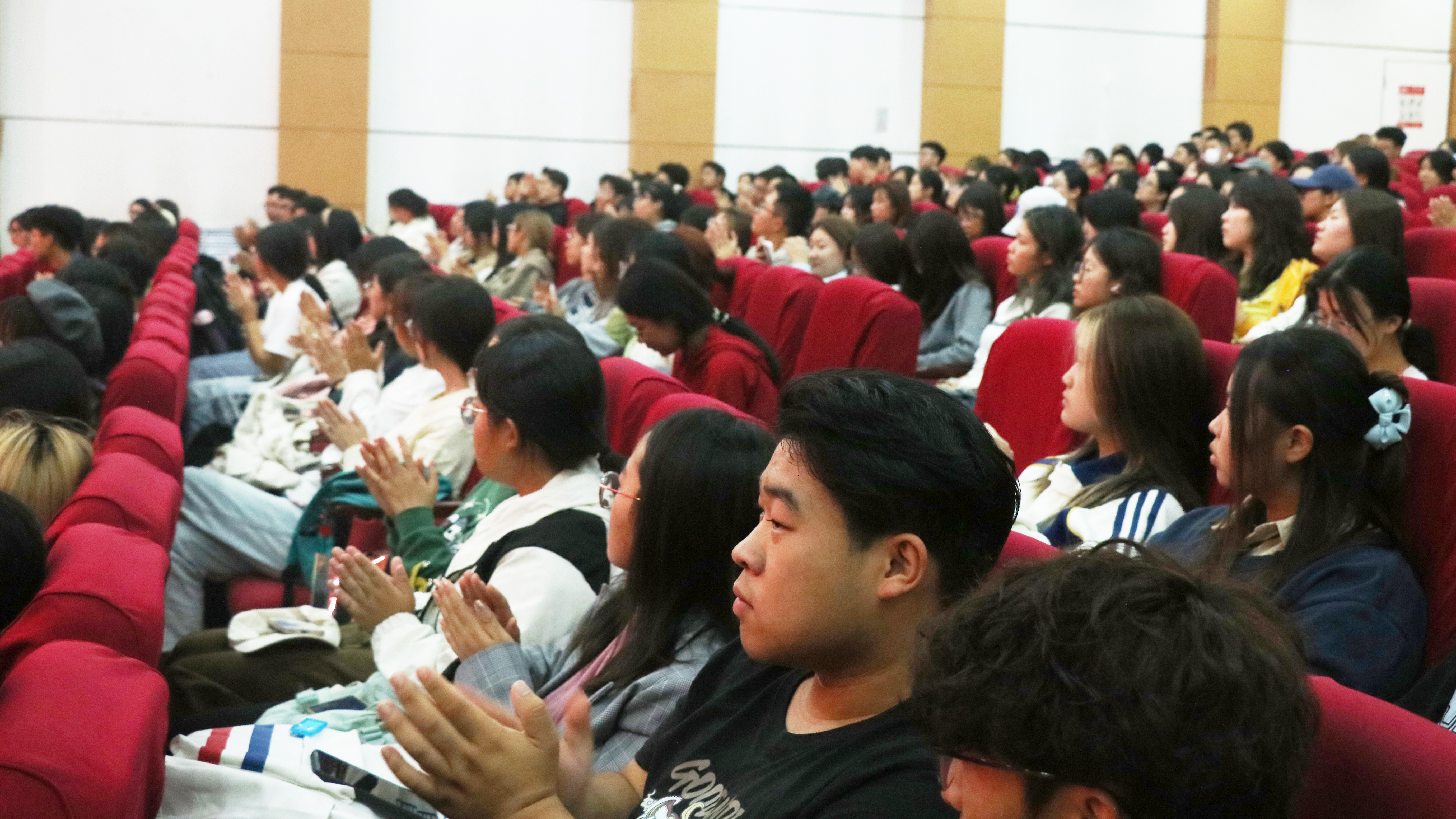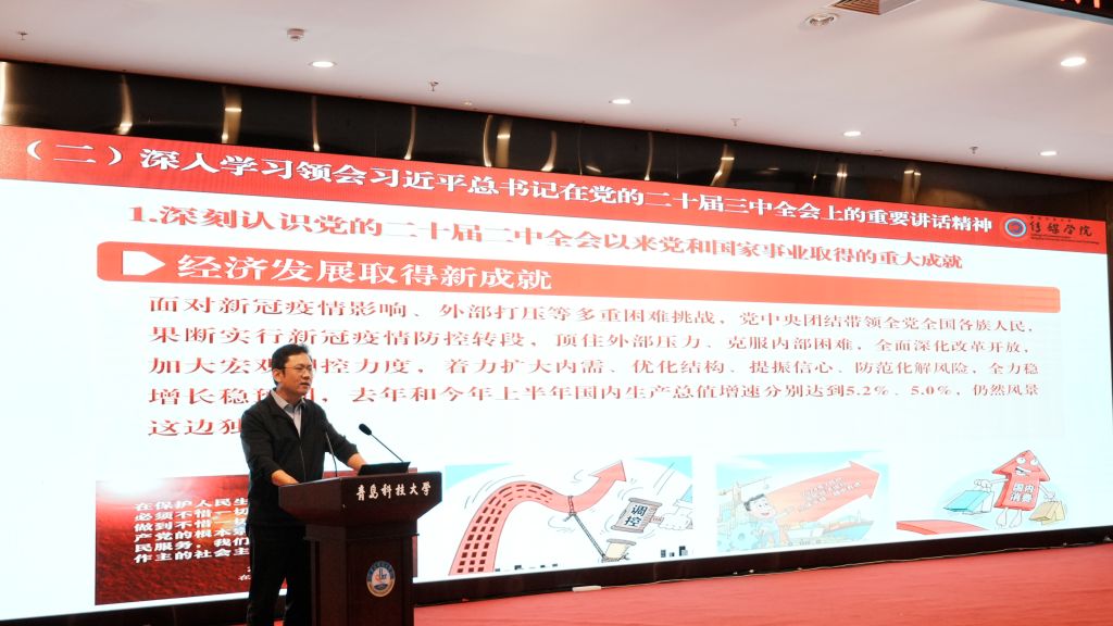 院长张洪坤为2024级新生讲授《深入学习贯彻党的二十届三中全会精神 为全面推进中国式现代化建设贡献青年力量》入学思政课,引导传媒学子扣好大学学习生活的“第一粒扣子”。245名本科生、88名研究生及全体学工队伍聆听思政课。