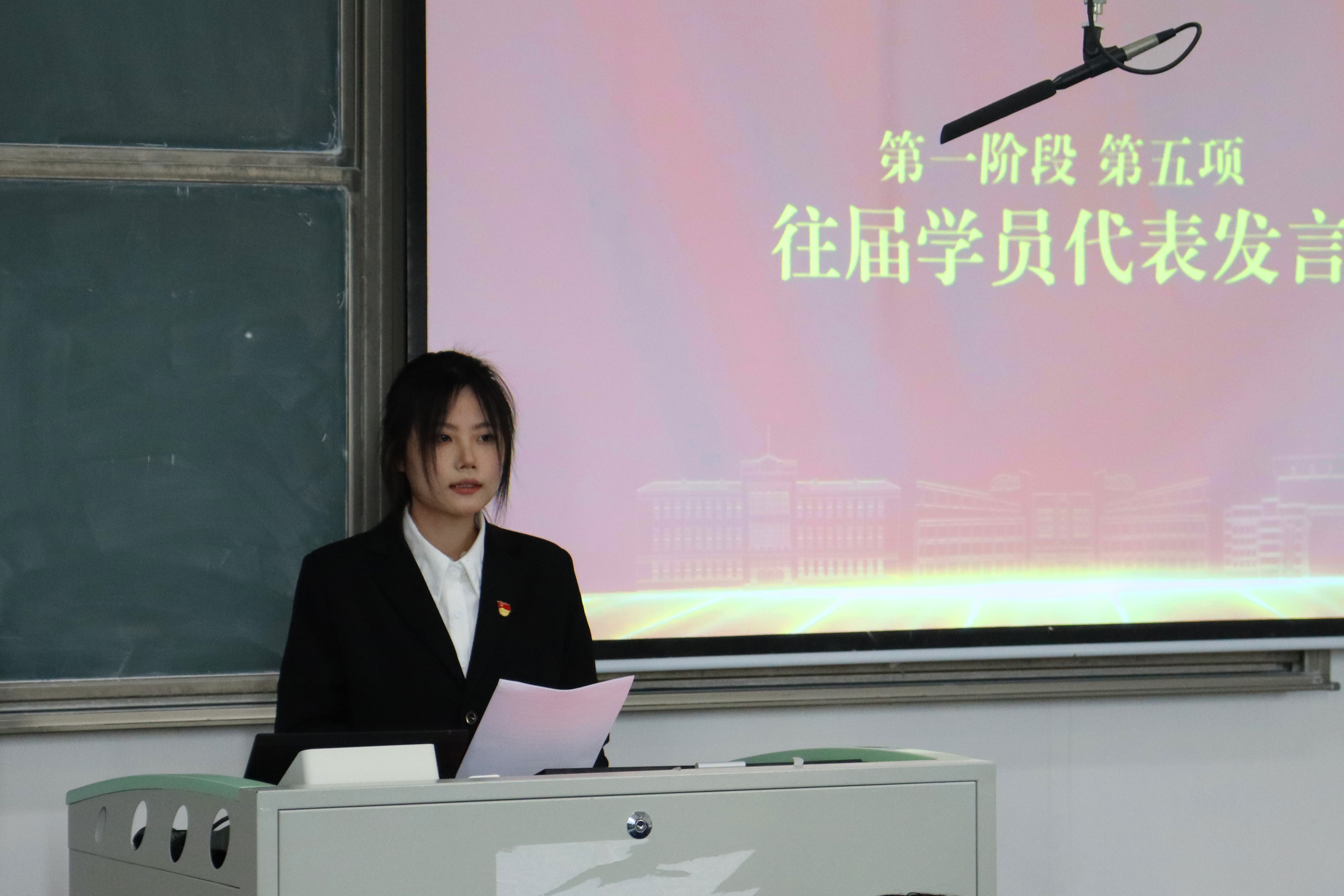学院“青马工程”培训班往届学员代表、编辑222班张曦同学发言;学院“青马工程”培训班新学员代表、24级出版硕士刘晓阳同学发言。