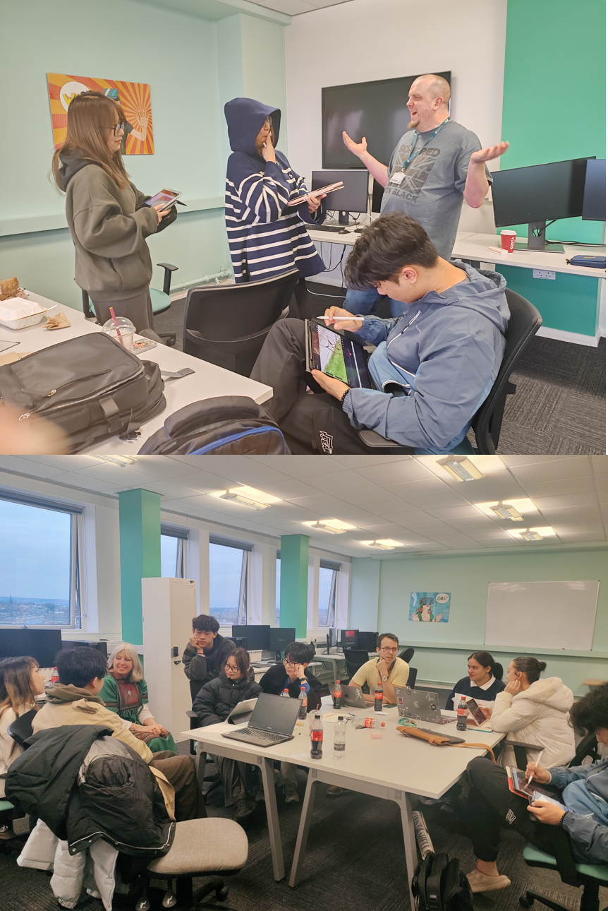 在“国际创作”环节上,我校师生与布拉德福德大学的师生携手构建了跨国创作小组,齐心协力投身于动画作品的打造,力求完成高质量的创意作品。在此期间,具有不同文化底蕴的同学们热切地进行交流,互相交换独到的见解与构思,使得整个创作历程充满了多元文化的交融与汇聚。这种跨越文化的互动不仅促进了双方教师团队间的相互认识与协作,还让学生们对英国文化有了更深入的了解,使得我们的动画作品更加多姿多彩,蕴含了更丰富的文化内涵与艺术魅力。