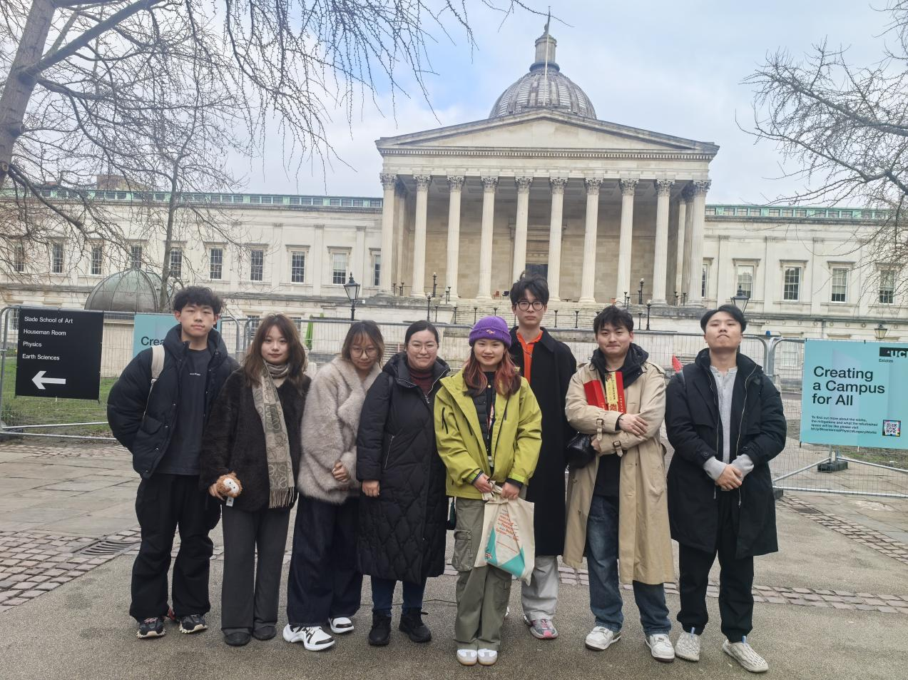 在“高校之旅”环节,我校师生得以造访两所历史悠久、文化积淀丰厚的英国高等学府进行观摩与交流。首先,工作坊师生踏入了伦敦大学学院(UCL),这所创建于1826年的学府是英国首个不设宗教及种族界限的高等教育机构,同时也是全球领先的综合性研究型大学之一。在UCL,学生们不仅感受到了英国高等学府文化的多元与包容,还与当地师生开展了深入的学术研讨和文化体验,受益良多。