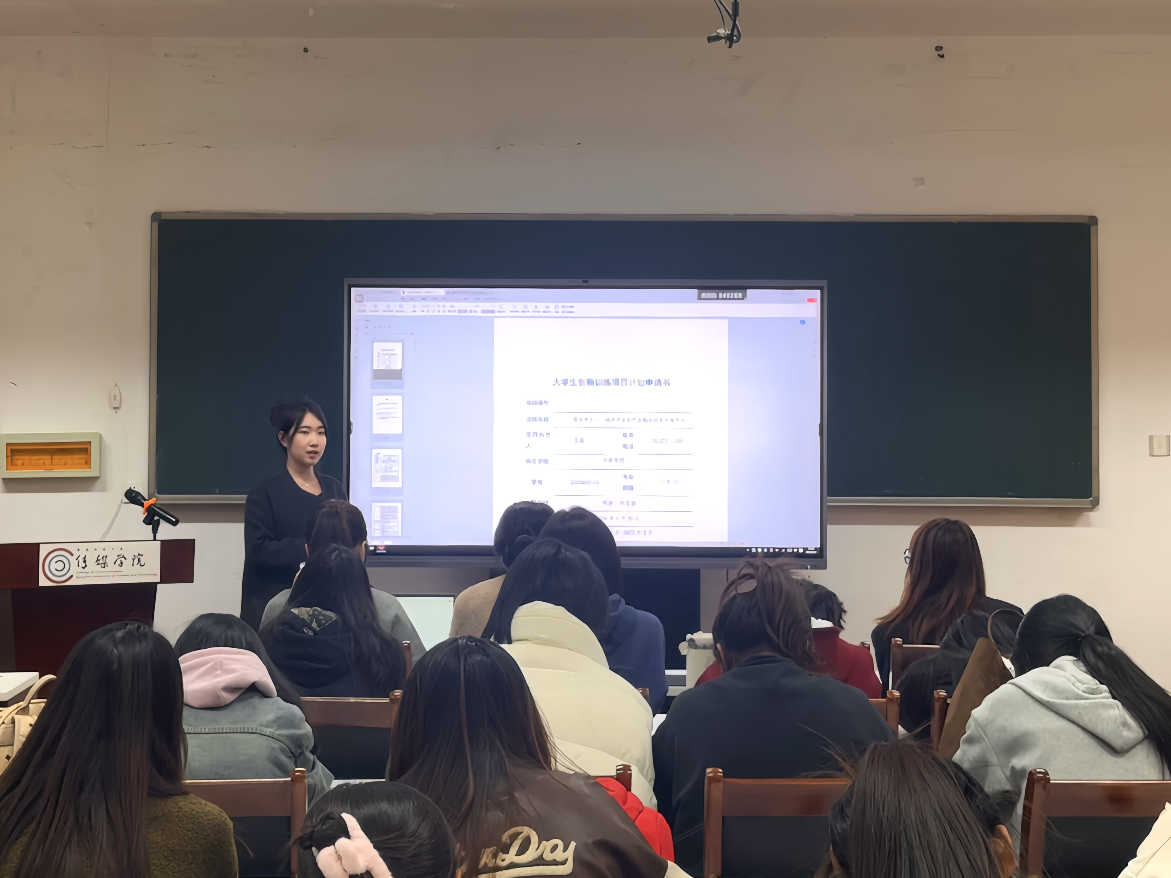 4月2日晚,学院还邀请多位国家级、省级大创立项的项目负责人担任主讲嘉宾,面向今年申报大创计划的团队进行分享交流。嘉宾们围绕团队组建、项目孵化、材料撰写等关键环节展开深度解析:在团队组建方面,强调跨学科协作的重要性;在项目孵化方面,分享从选题到落地的全流程经验;在材料撰写方面,通过案例演示材料撰写的关键逻辑以及注意事项。同学们就备赛过程中遇到的各类问题与嘉宾深入交流,现场气氛积极热烈。