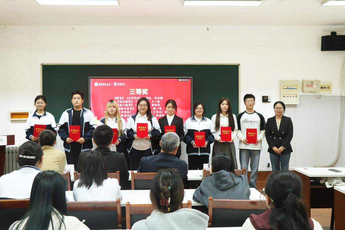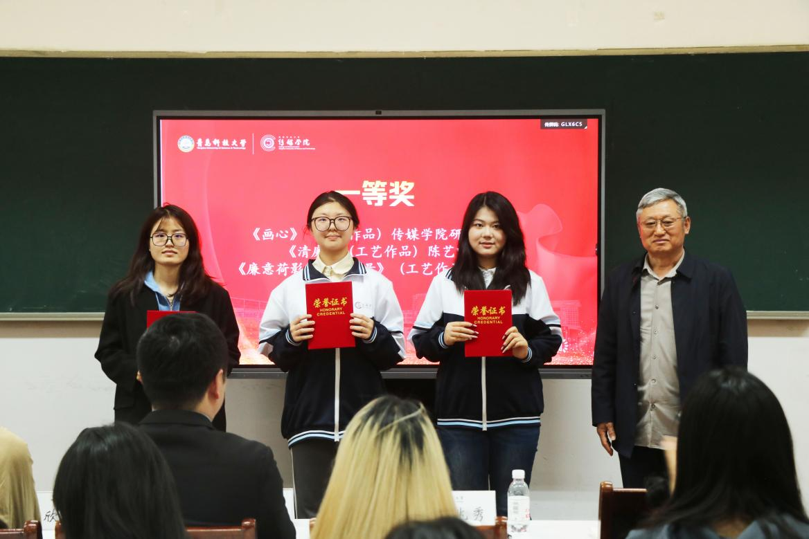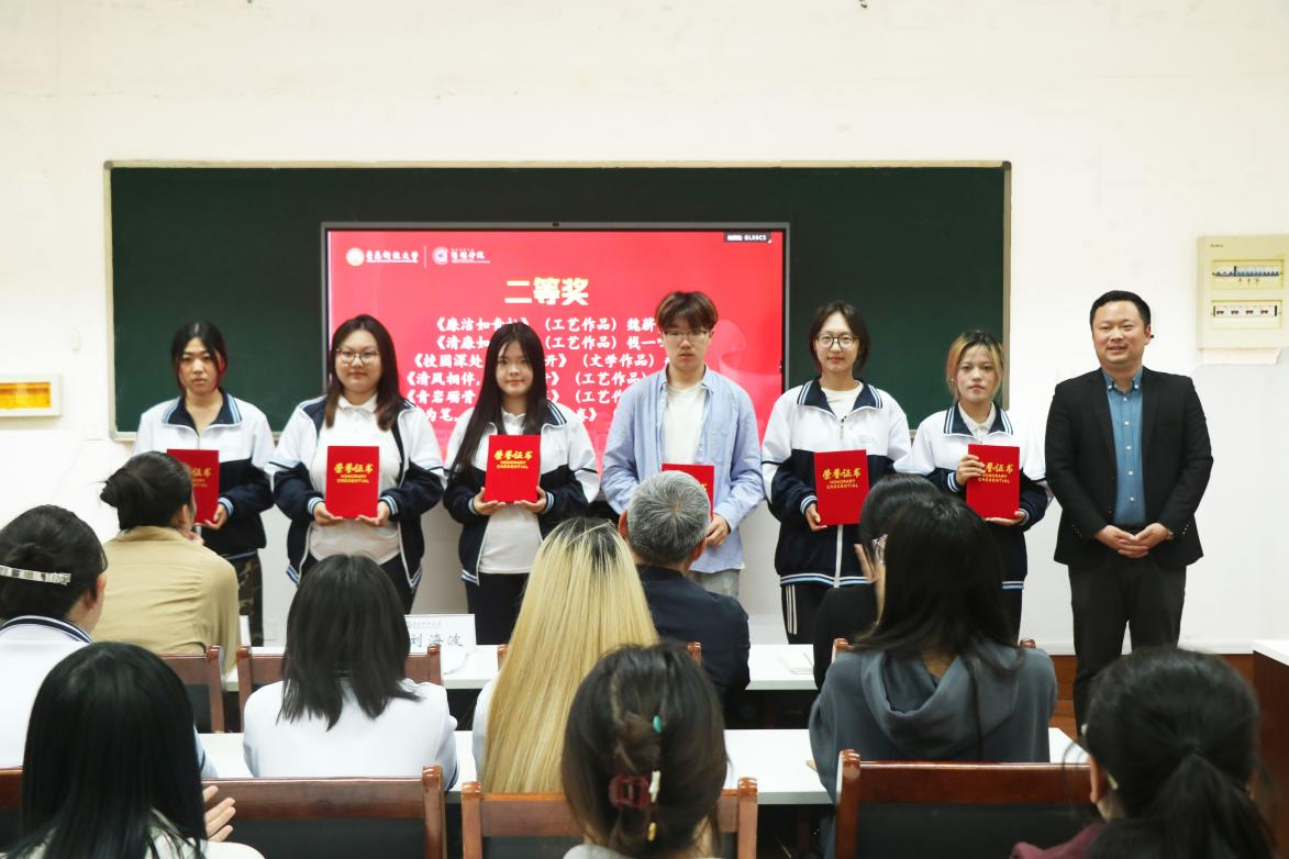 本次评选活动面向全院师生征集作品,得到了广泛响应,共收到文学作品、工艺作品、光影作品等各类作品近40件。经过学院评审,最终评选出一等奖3项、二等奖6项、三等奖8项。颁奖环节中,学院领导老师依次为获奖同学颁发荣誉证书,并对他们的作品给予好评。