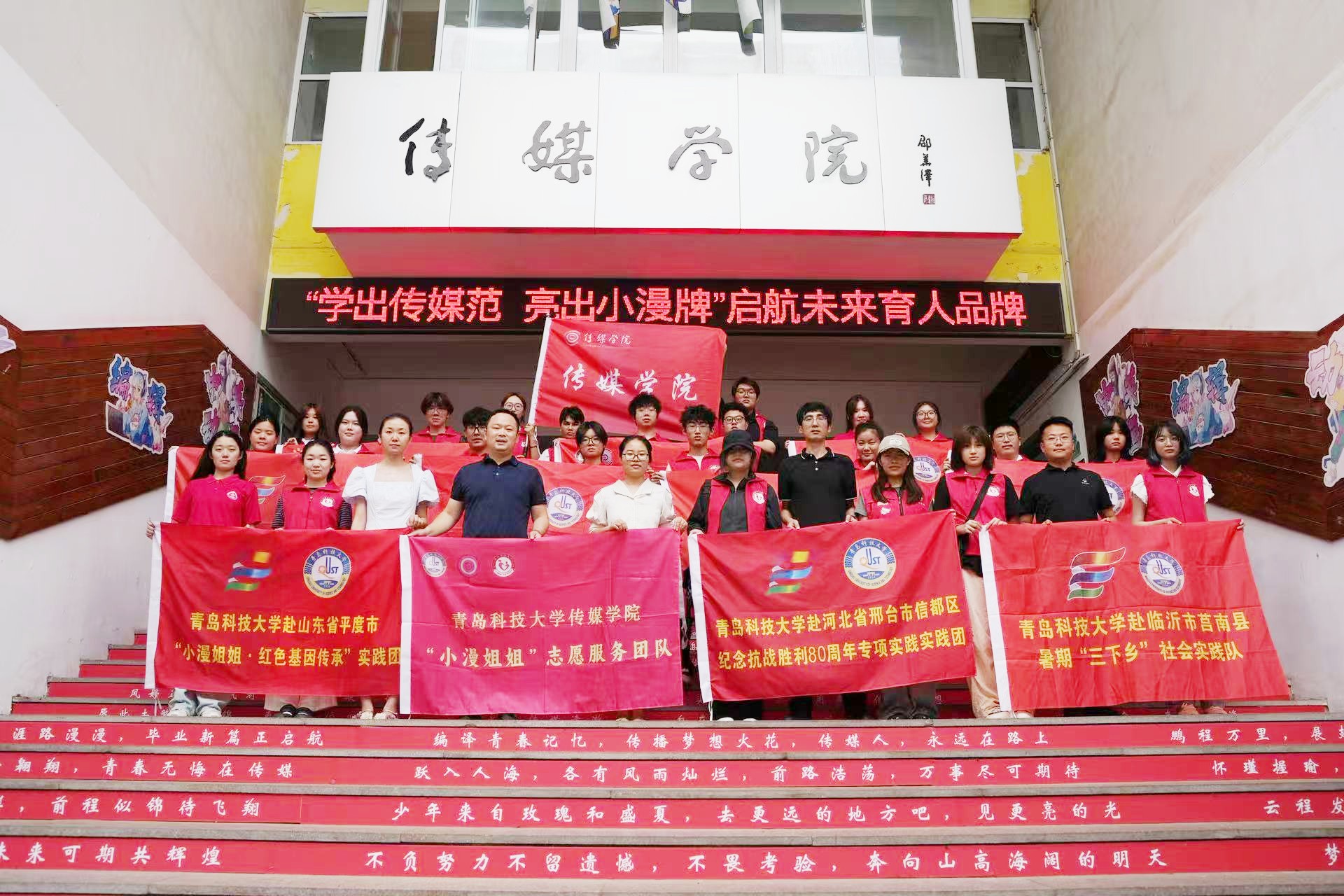 “一个品牌”深化可持续长效机制。“小漫姐姐”志愿服务团队连续16年立足学院动画国家一流专业、编辑出版等优势资源与特色,深耕“思政+美育”特色育人。团队先后荣获国家级“三下乡”优秀实践团队、山东省志愿服务示范项目等多项荣誉,团队事迹被中国青年报、中国青年志愿者等60余家媒体报道,擦亮青科传媒特色品牌,获得一致认可和广泛赞誉。
