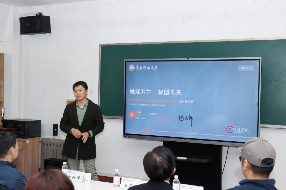 ,与我院师生开展互动交流,并共同参加了两岸青年主题共创活动。青岛市台湾事务办公室四级调研员朱兴峰、学院副院长(主持工作)石晨旭、校党委统战部综合科科长刘元媛等出席活动,活动由传播学系主任杨先起主持。