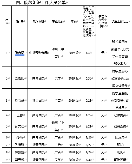 3、试用人员试用期合格,正式录用前应填写学生干部档案登记表。