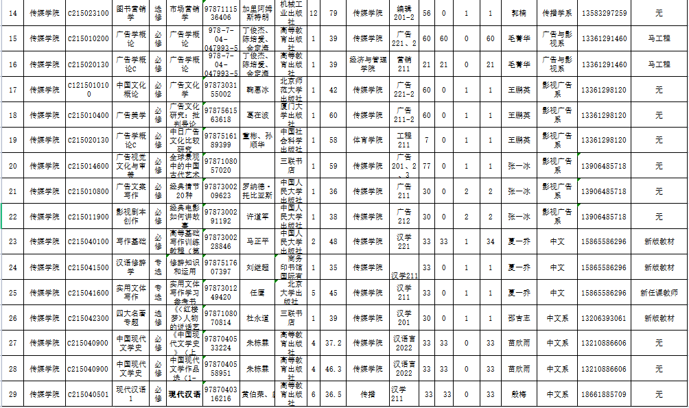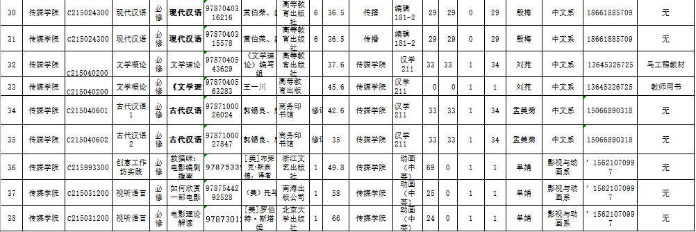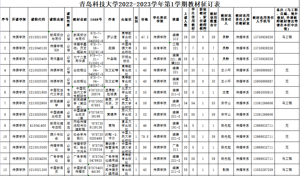做爱电影 2022-2023学年第1学期教材征订表