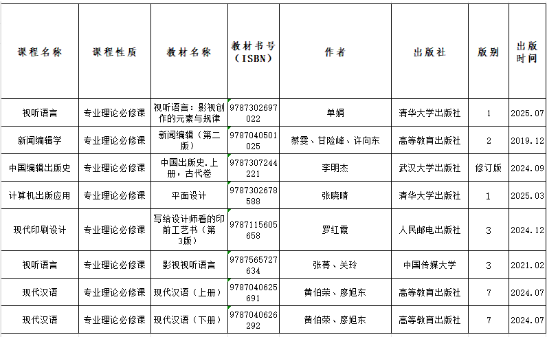 根据教务处《关于做好2025-2026学年第一学期教材选用征订工作的通知》安排,由任课教师提交教材选用建议,经做爱电影 传媒学院本科教材工作小组集体审议,现将2025-2026学年第一学期本科教材选用情况予以公示。