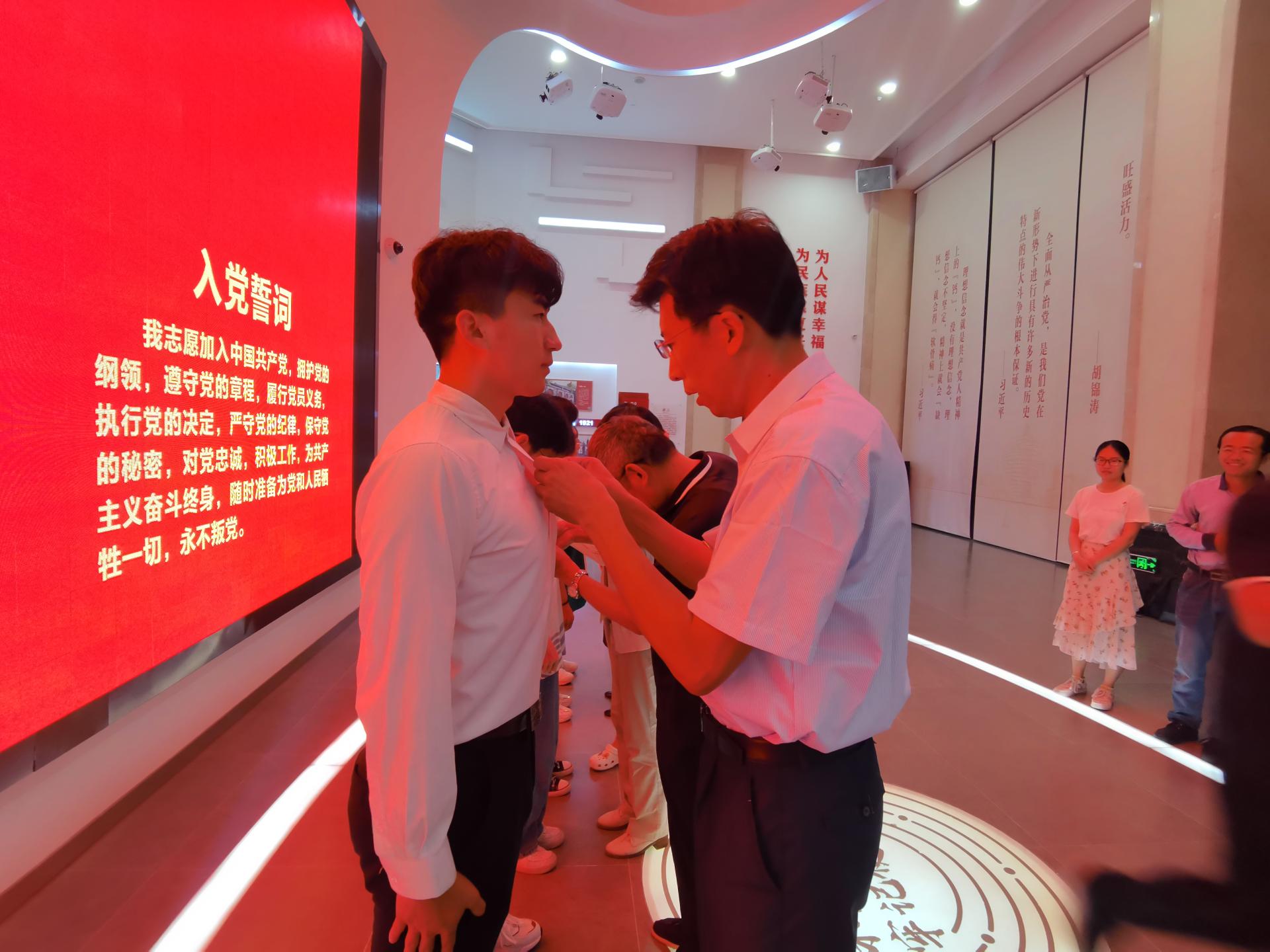 上午,做爱电影 党员师生代表来到李沧区党员政治生活馆参观学习。在展馆大厅前,学院党总支书记刘志国面向党旗,举起右手,带领大家重温入党誓词。“我志愿加入中国共产党,拥护党的纲领,遵守党的章程….,为共产主义奋斗终身,随时准备为党和人民牺牲一切,永不叛党。”大家用铮铮誓词宣示着自己的初心使命和为党的事业奋斗终身的决心。