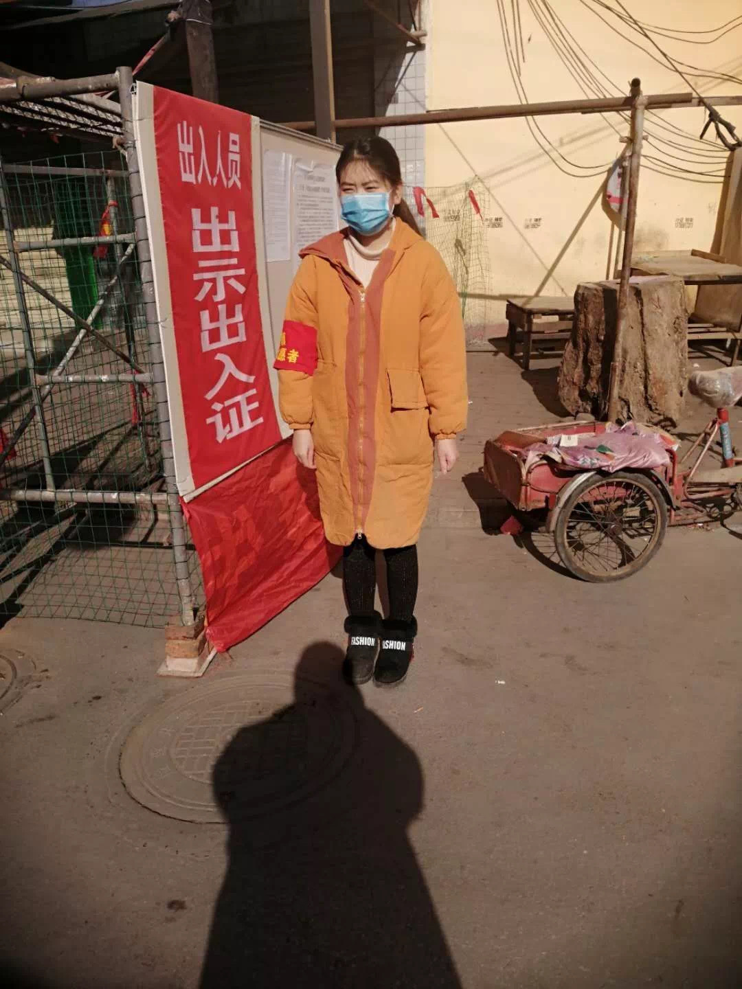 1月31日杨媛便进入工作状态,并以就近原则被安排在铺镇供销社家属区,担任一日两次喷洒84消毒液的工作和在人群密集的东菜集疫情防控点检查进出人员的出入证、测量体温以及实名登记工作。怀着当代青年大学生的责任感,杨媛同学切实地履行着自己的义务。