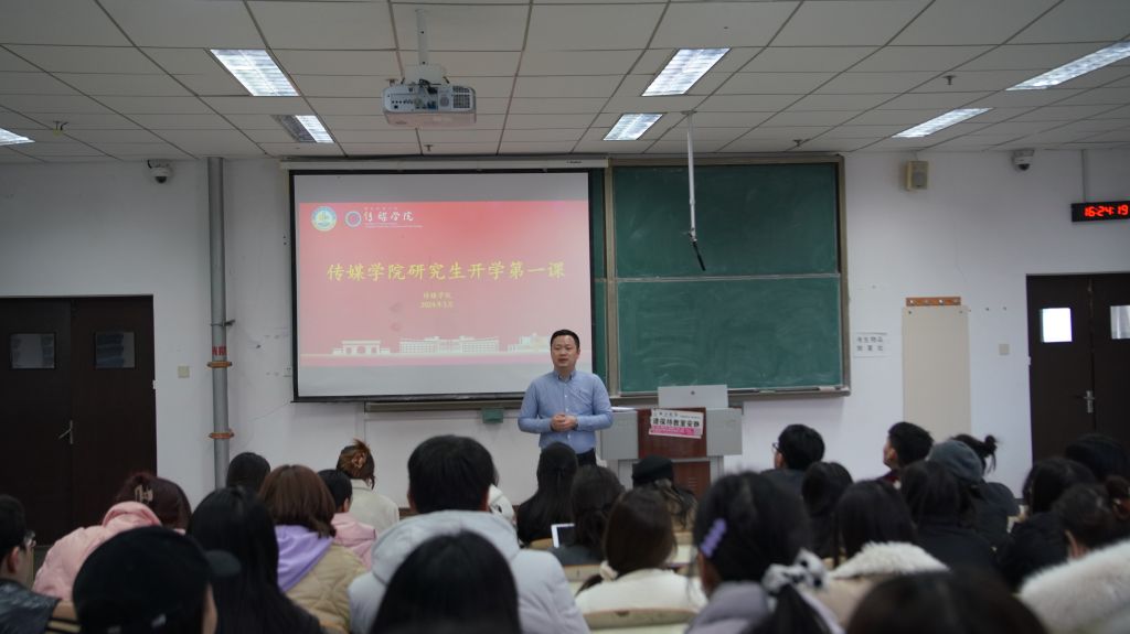分年级召开2024年春季学期研究生开学第一课,学院党委副书记兼副院长刘海波出席活动并作主题分享,学工办主任兼团委书记于杰亮就学院研究生就业情况进行数据分析,辅导员李嘉欣主持活动。