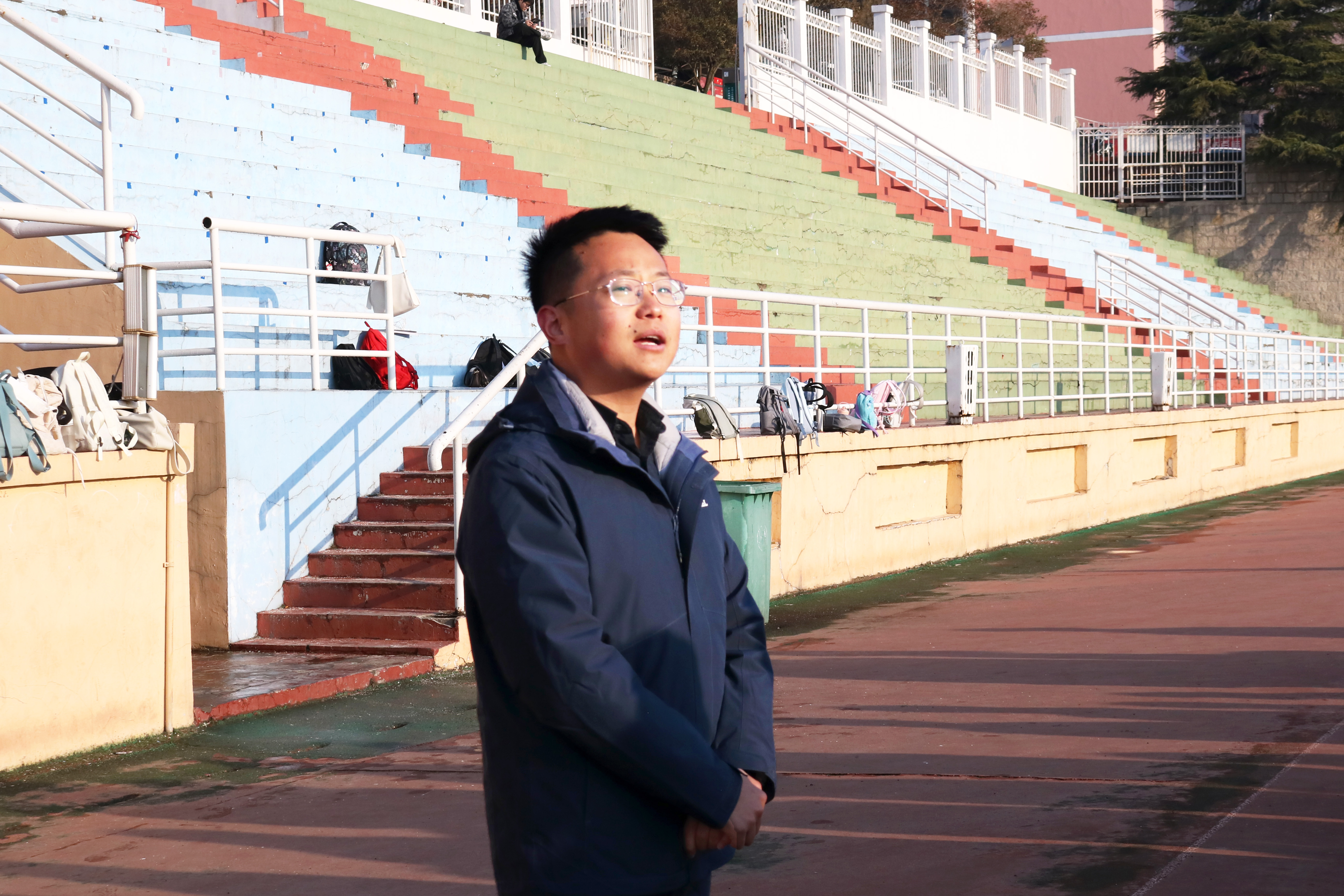 早晨7:00,参与晨跑活动的同学于南苑操场主席台前集合完毕,团委刘福民老师作动员讲话,他结合当前“脆皮大学生”现象,强调了加强体育运动对于改善身心状态的重要意义,勉励同学们自觉参与到健康跑运动中来。