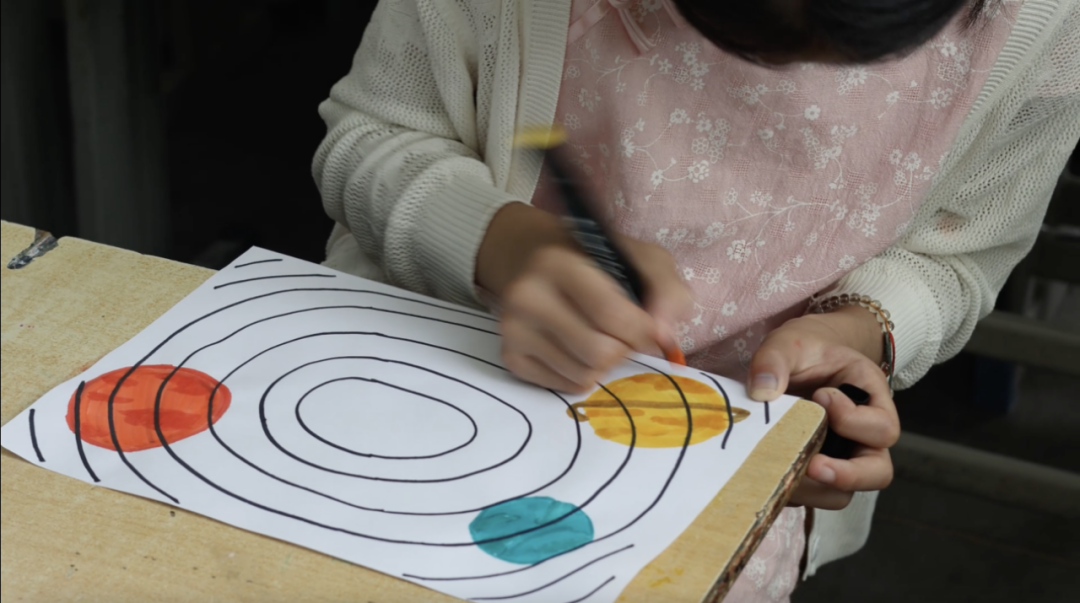 教室里笔尖与纸沙沙的摩擦声和孩子们的小声讨论仿佛静止了时间,小小的一方纸片承载了他们的想像力和探索未知的热爱。