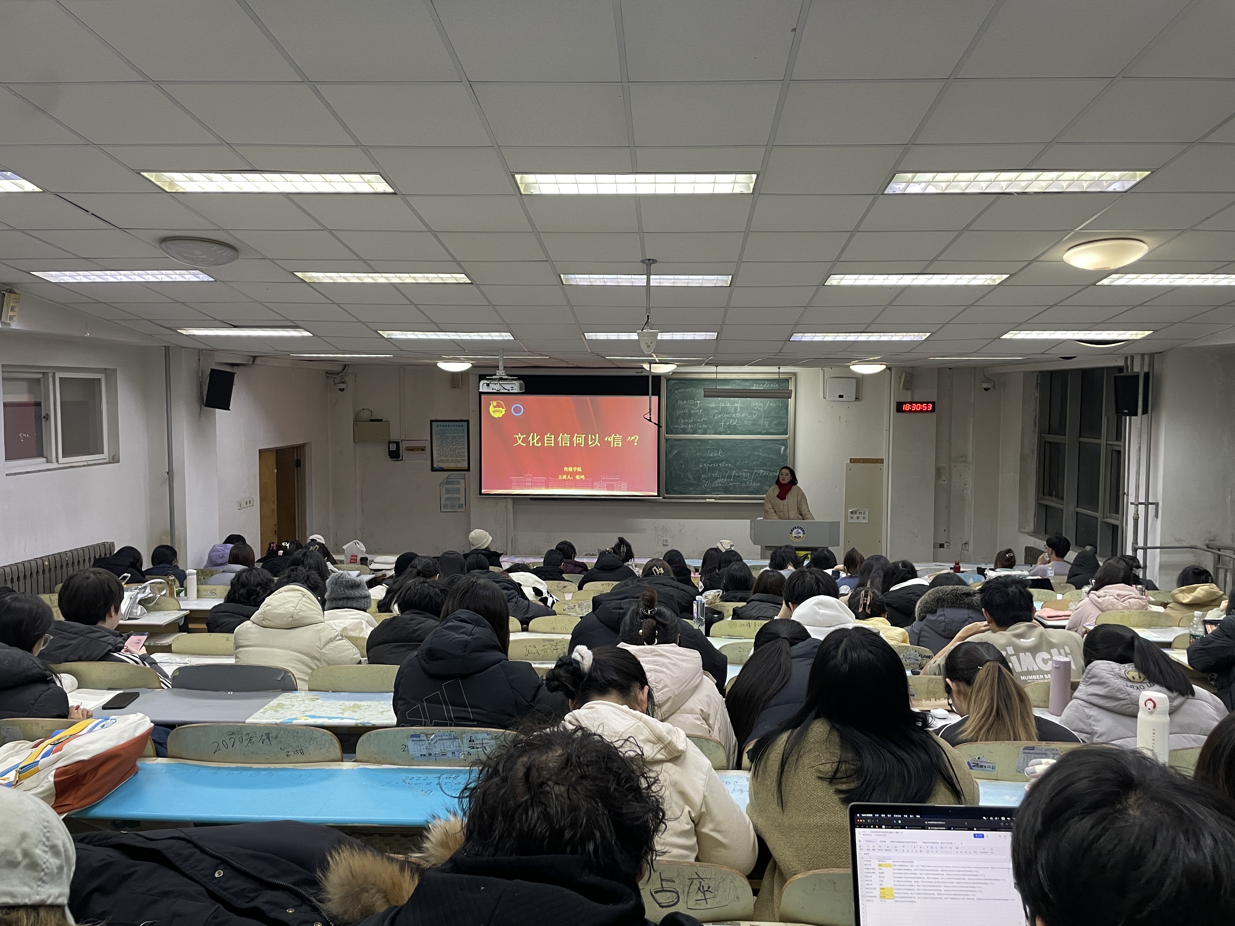 张鸣以“文化何以‘信’?”“文化自信信什么?”“文化自信如何信?”“文化自信躬自信“四个问题为引入,先向入团积极分子们讲述了什么是中华文化基因,不仅讲述了中华文化基因的核心思想、生成过程以及经久不衰的原因,并且讲述了中华文化基因的现代意义以及所面临的时代挑战。随后,张鸣以当前文化传承挑战为背景,讲述了青年大学生应如何坚定文化自信、坚持传承和弘扬中华优秀传统文化,践行社会主义核心价值观,担负起“文化强国”的使命。最后,她向同学们讲述深植文化自信的具体做法,并带领同学们展开了热烈的讨论和交流,共同探讨如何在新的时代背景下,传承和发扬本土文化。