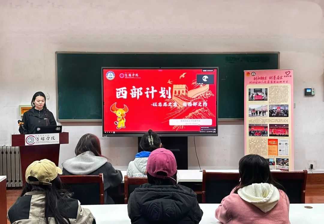 “到西部奋斗 让青春出彩”西部计划宣讲会在学院310会议室举办。本次宣讲会邀请2024年西部计划志愿者范丹平、蒋森豫分享经验,现场吸引260余名学子线上线下参会。会议由学院团委负责人金莹莹主持。
