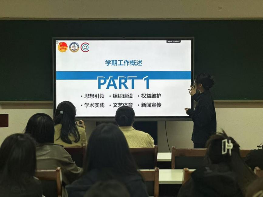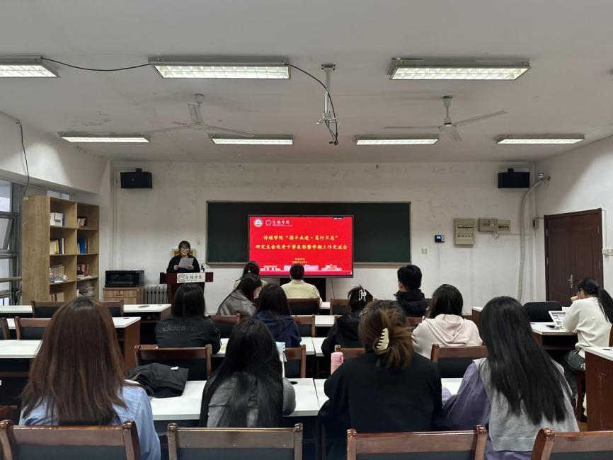 开展“携手共进・笃行不怠”研究生会优秀干事表彰暨学期工作交流会。学院团委副书记兼学工办副主任金莹莹、辅导员李嘉欣、研究生会全体成员参加会议。