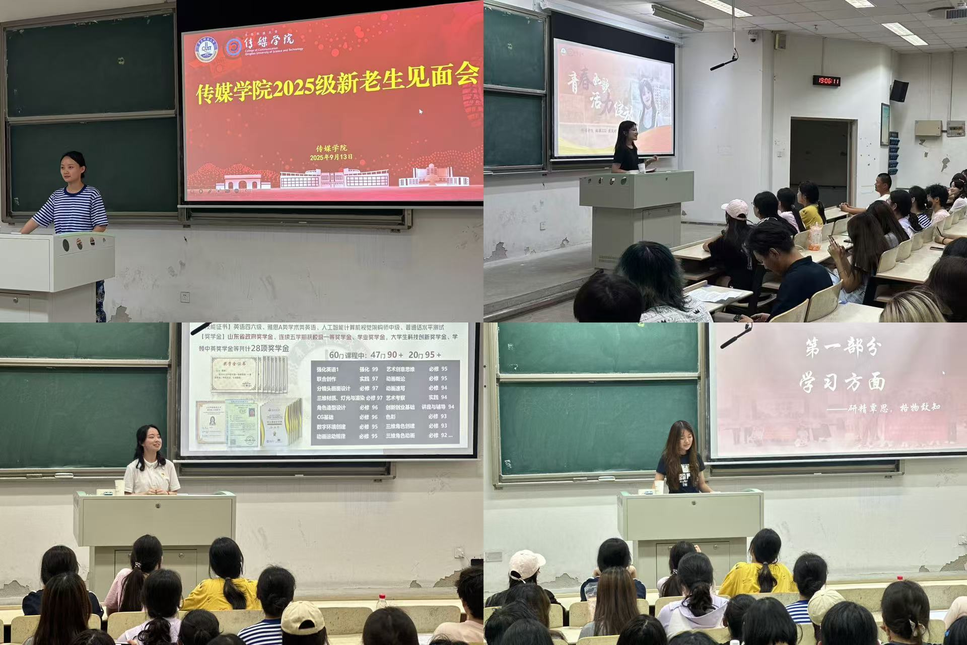 举办高年级优秀学生和2025级新生见面交流会,会议由辅导员张凤老师主持。学院三位高年级优秀学生代表分别从专业学习、学科竞赛、社会实践和学生工作等方面分享了自己的成长经历与心得体会。24级优秀班助代表也结合自身经验为新生答疑解惑,现场互动频繁、气氛热烈,充分展现了“青科传媒人”传帮带的优良传统和团结向上的精神风貌。