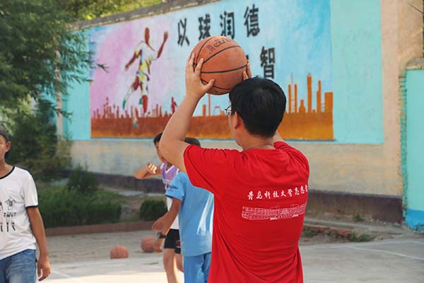 传播与动漫学院赴临沂的志愿活动也十分重视体育方面的培训,在临沂之行中,每天的体育训练是必不可少的,志愿者带着孩子们在阳光下打篮球、踢足球,享受体育运动的乐趣。志愿者们通过打友谊赛的方式将孩子们集中在一起,既锻炼了身体素质,又培养了孩子们的集体意识。在这些天的体育训练中,无论是志愿者还是孩子们,都获得了新知与激情。