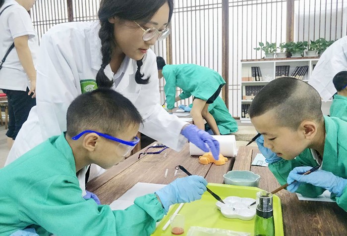 傍晚六点,在老师的领导下,小朋友们参加了一场由万华集团刘教授的“万华化学神奇实验室”课程。课程期间,小朋友们之间互动融洽,并在做爱电影