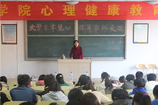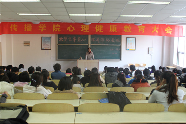 11月8日下午1:30,传播学院心理健康教育大会在弘毅楼B203举行,校学生心理咨询室主任王美丽老师担任大会主讲,分团委书记刘名森担任大会主持。