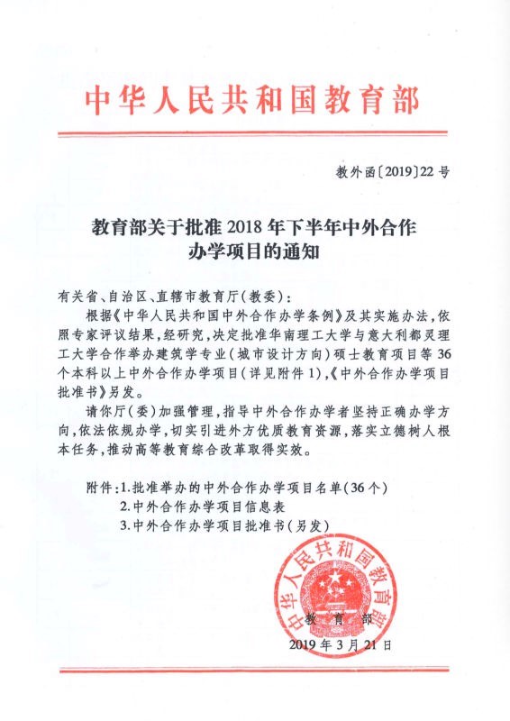 教育部关于批准2018年下半年中外合作办学项目的通知