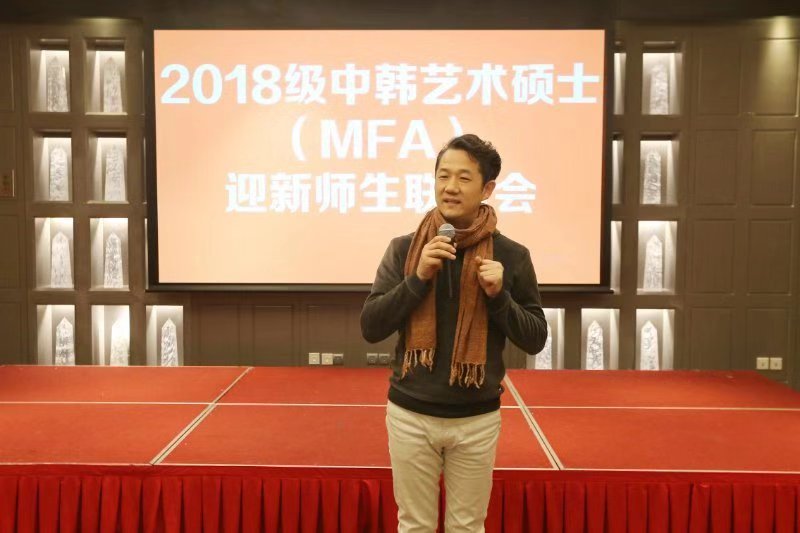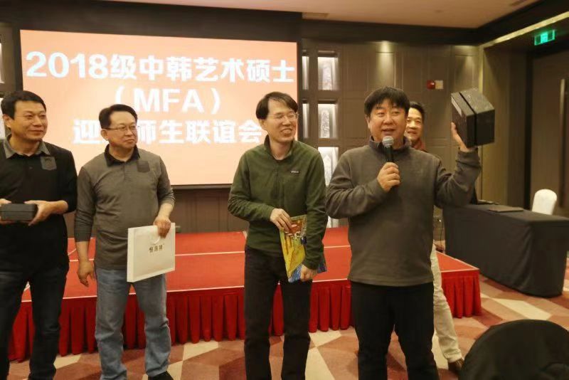 特聘教授金正铉首先致辞,他热烈祝贺2018级全体同学顺利完成本学期的全部课程,并对同学们的作品进行逐一点评,勉励同学们在求学中要善于创新、不断进取、敢于实践。