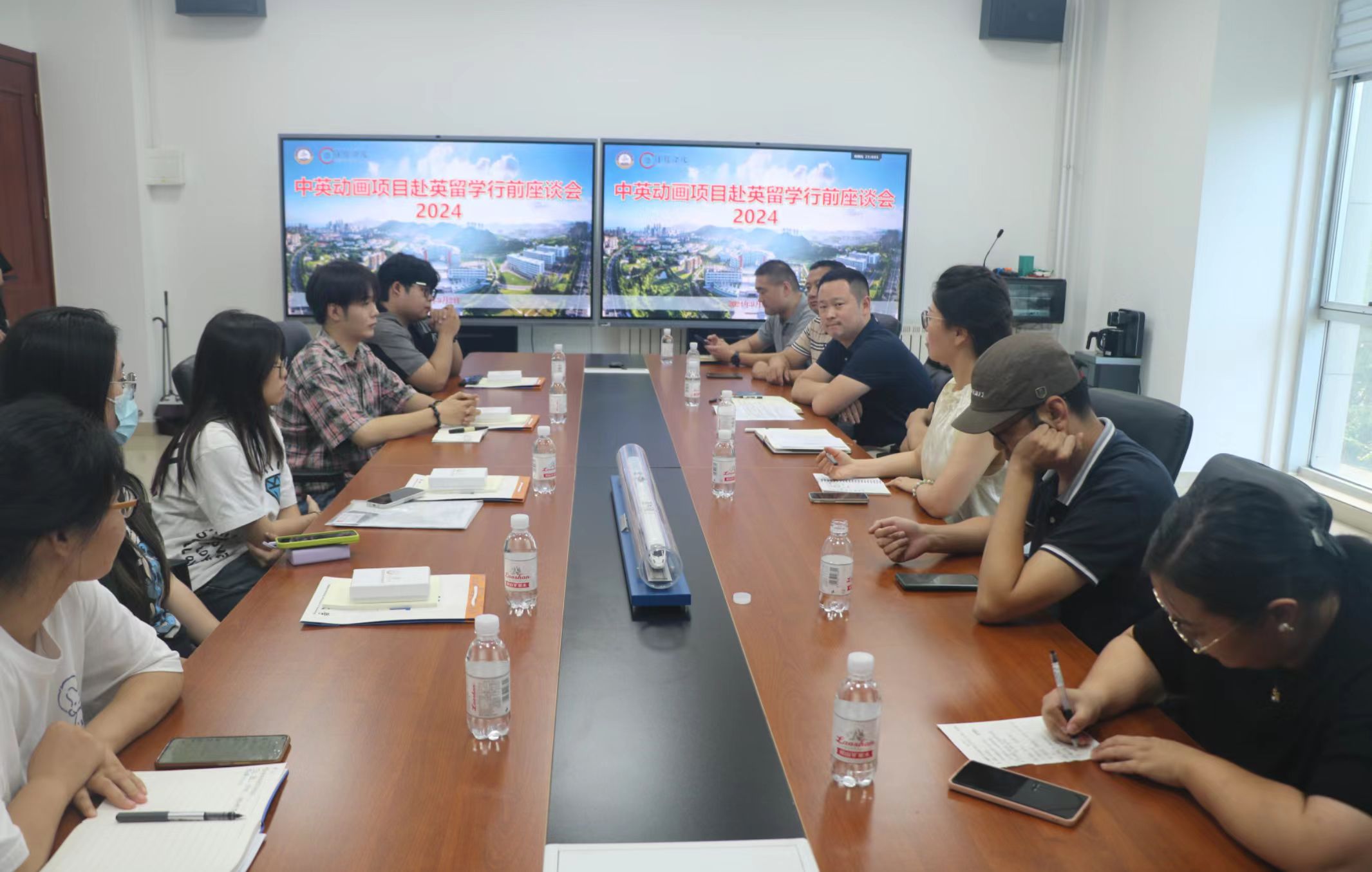 副院长石晨旭、动画系主任陈墨白、副主任徐克彬、中外合作办公室主任刘勇、2021级辅导员金莹莹、动画系讲师陈璐、上海学领教育集团(青岛)王铭,及2021级动画(中英)赴英留学生参加了会议。交流会由做爱电影